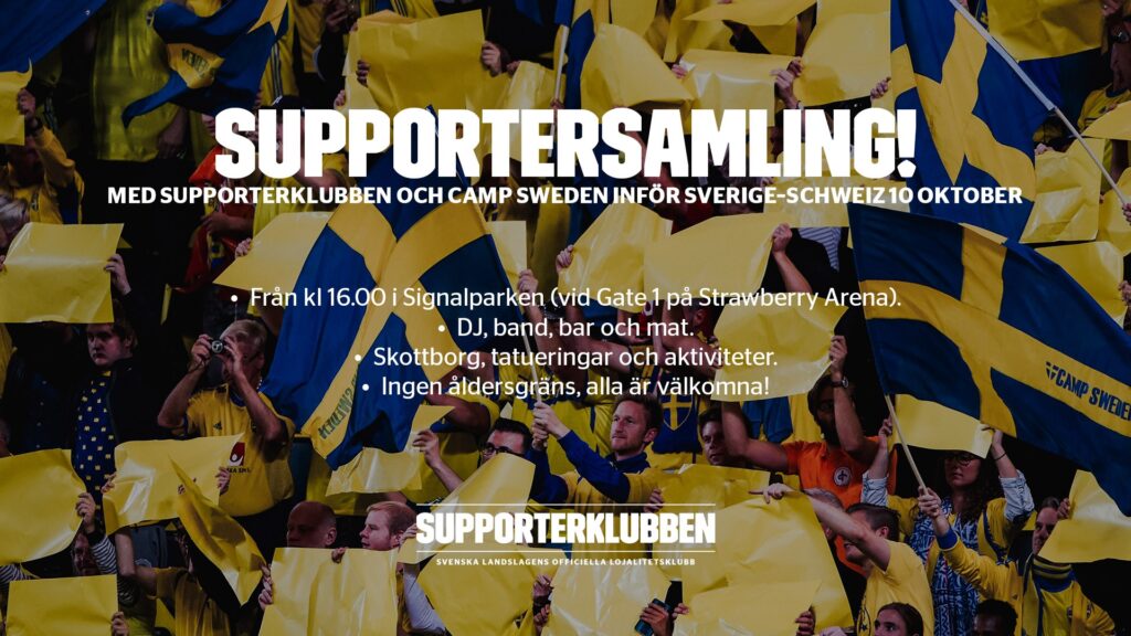 Tillsammans arrangerar Supporterklubben och Camp Sweden supportersamling inför det utsålda VM-kvalet mellan Sverige och Schweiz.